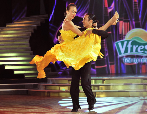 Trang phục của Anh Khoa và bạn nhảy được khen là luôn giản dị nhưng rất hợp nhau và tôn được vóc dáng