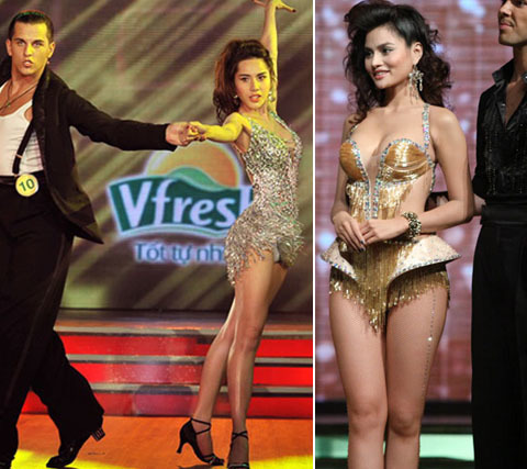 Trang phục của Thủy Tiên gợi nhớ lại bộ trang phục từng được nhận xét là "bỏng mắt" và ấn tượng với ban giám khảo của người mẫu Vũ Thu Phương