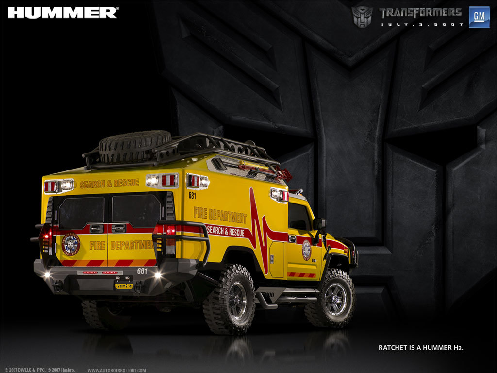 Ratchet - một nhân vật hầm hố khác được lấy cảm hứng từ chiếc Hummer H2 thuộc đội tìm kiếm và giải cứu của sở cứu hỏa Mỹ.