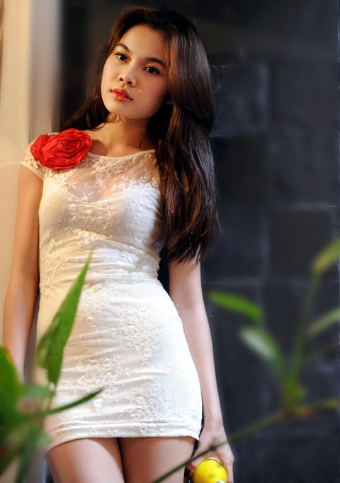 Trong bộ ảnh được thực hiện ngẫu hứng tại quán cà phê ở TP.HCM, Giang Hồng Ngọc - nữ ca sĩ trẻ chỉ xem mình là học trò chứ không phải "giai nhân mới của Hà Dũng", thể hiện sự gợi cảm, nữ tính với chiếc váy cực ngắn trắng tinh khôi.