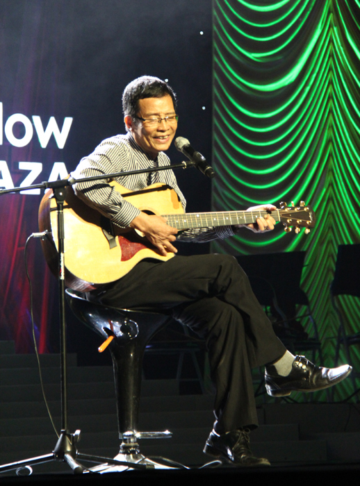 Nhạc sĩ Trương Ngọc Ninh tự ôm đàn và ngồi hát "Thành phố quê tôi" - một ca khúc sáng tác về mảnh đất Nam Định nghèo nhưng nặng nghĩa nặng tình.