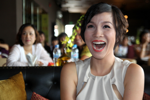 Mỹ Linh với nụ cười rất "khoái chí" trong buổi họp báo ra mắt đĩa