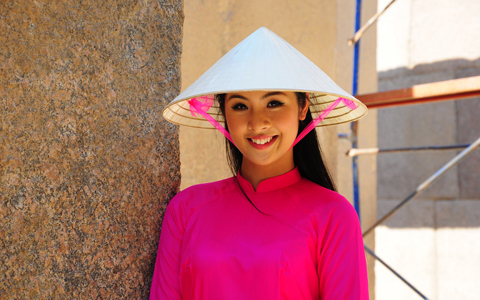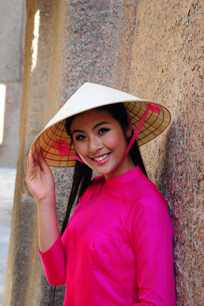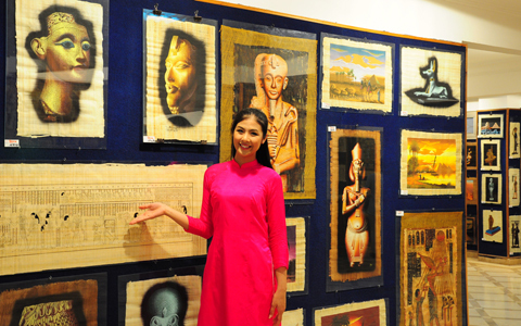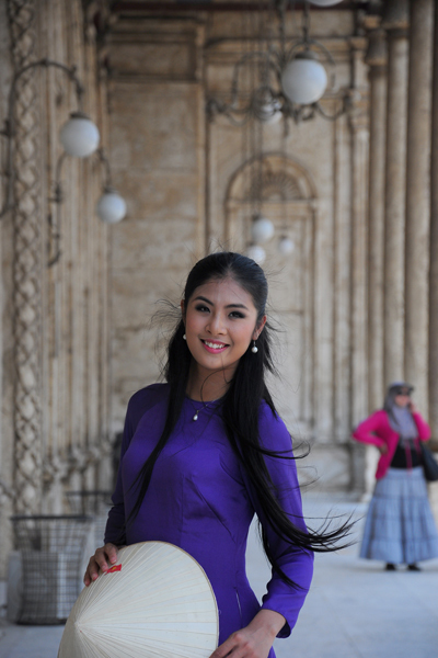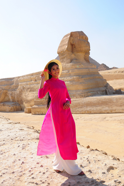 Hình ảnh Ngọc Hân ở Ai Cập trong trang phục áo dài: