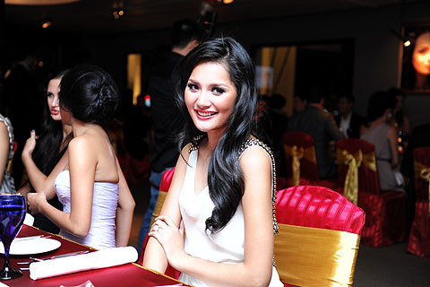 Tối 16/7, Ngọc Trinh đã có mặt tại buổi tiệc gặp gỡ đoàn Hoa hậu Nga