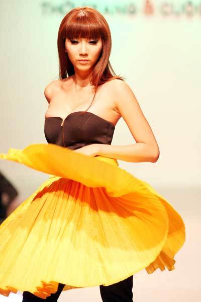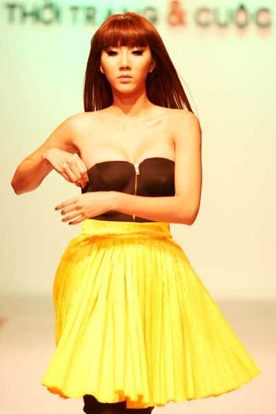 Ngọc Quyên được chọn để giới thiệu bộ trang phục với chiếc áo có thể linh động dùng làm váy. Cô sải bước tự tin trên sàn diễn, tuy nhiên chiếc áo có phần hơi “phản chủ” vì khoét quá sâu, buộc cô phải dùng tay kéo lên để tránh được tai nạn nghề nghiệp.