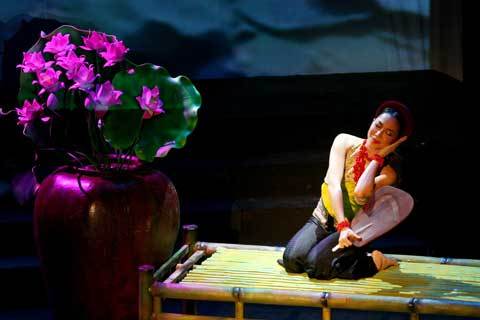 - Người đẹp nổi tiếng của làng múa hóa thân thành cô gái Việt xưa ra hóng mát ngoài hiên trong tiết mục chủ đạo của chương trình nghệ thuật múa “Sen”.