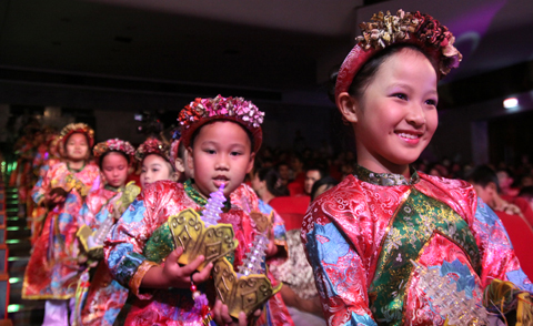 Không chỉ biểu diễn ở trên sân khấu, dưới hàng ghế khán giả cũng trở thành nơi biểu diễn bởi dàn diễn viên nhí trong trang phục rực rỡ.