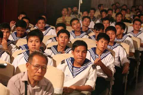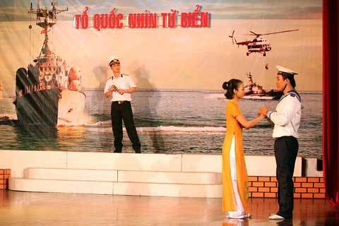 Trong một đêm hiếm thấy, hội trường Nhà văn hóa Thanh niên TP.HCM tràn ngập sắc áo trắng của những người lính biển của Căn cứ Hải quân 696 và những học viên của Trường trung cấp kỹ thuật Hải quân. Họ là khán giả đặc biệt của đêm giao lưu thơ nhạc chủ đề ‘Tổ quốc nhìn từ biển’, diễn ra vào tối ngày 28/8.