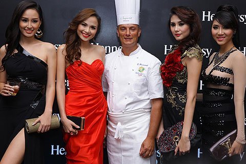 Các người đẹp chụp hình cùng đầu bếp nổi tiếng David Fransoret.