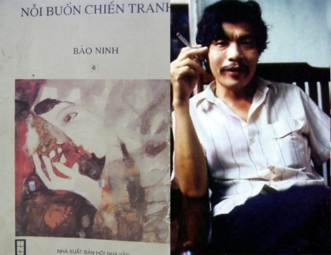 Nhà văn Bảo Ninh thời trẻ và bìa cuốn "Nỗi buồn chiến tranh" được NXB Hội Nhà văn ấn hành năm 1991