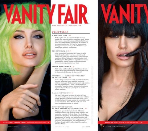Angelina Jolie là một trong những ngôi sao có tần suất xuất hiện dày đặc nhất trên tạp chí danh tiếng này. Gần như năm nào cô cũng được VF chọn là gương mặt trang bìa một lần và đều tạo ấn tượng mạnh. Mới đây Angie lại tiếp tục trở thành ngôi sao của VF tháng 9. Nhân dịp này, VF đã cho đăng tải trọn bộ những bức hình đã từng thực hiện về cô trong những năm qua. Loạt ảnh cũng cho thấy những thay đổi rõ rệt về ngoại hình cũng như phong cách của ngôi sao nổi tiếng bậc nhất Hollywood này.