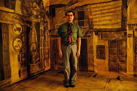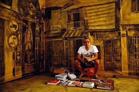 Bùi Công Khánh tâm sự: "Tôi vẽ khung có kích thước bằng người thật với chì than trên nền giấy để tái hiện lại những mảnh vụn thành phố và nhờ bạn bè, hàng xóm ngồi cho tôi chụp ảnh trên nền hư cấu này để nhớ lại một cuộc sống cộng đồng rồi chẳng bao lâu nữa sẽ bị xóa bỏ".