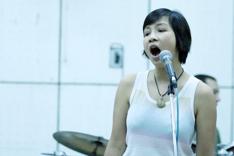 | Tuy giản dị trong cách ăn mặc, nhưng với âm nhạc Mỹ Linh luôn tỏ ra khá khó tính khi thi thoảng vẫn trao đổi cùng ban nhạc những chỗ chưa vừa lòng |