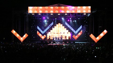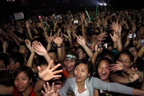bằng những bóng đèn led nhỏ xíu của fan hâm mộ đung đưa theo điệu nhạc, ánh sáng