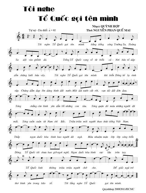 Bài hát ""Tôi nghe Tổ quốc gọi tên mình" nằm trong album "Tổ quốc nhìn từ biển" của nhạc sĩ Quỳnh Hợp, đã phát hành đầu tháng 10/2011.