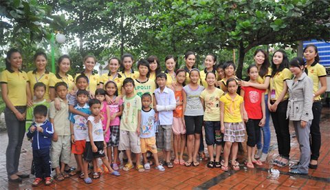 Các người đẹp, hoa hậu chụp ảnh với các em nhỏ ở Trung tâm.