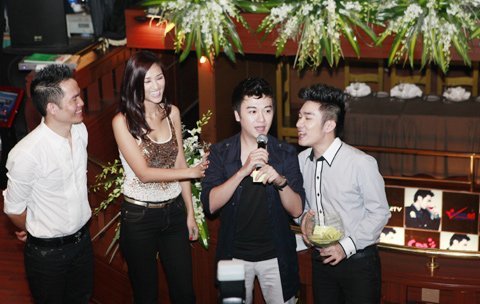 | Dù bận rộn với việc đi kiện để đòi bản quyền âm nhạc cho đĩa Đồng đội nhưng sao mai Thái Thùy Linh cũng tranh thủ đến chung vui với Quang Hà. |