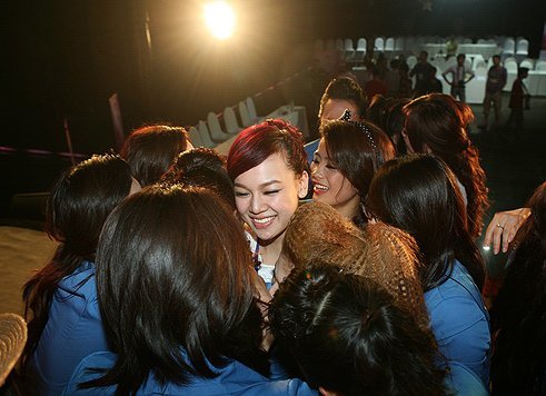 | Khi TOP 4 Miss Teen tài năng ca hát đã được công bố, bên trong cánh gà, 4 ứng viên cho danh hiệu vẫn khoác tay nhau vui đùa. |