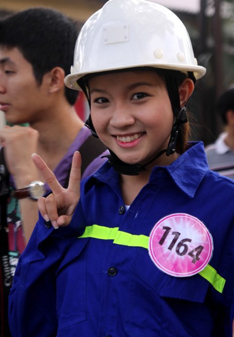 Khoác lên mình trang phục người thợ mỏ, với làn da trắng hồng trông thí sinh nào cũng trở nên xinh tươi.