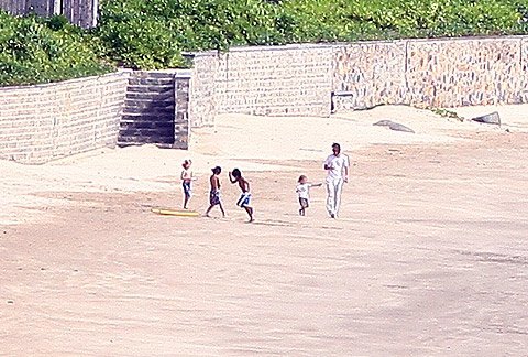 | Từ trái sang: Shiloh, Pax Thien, Maddox, Knox và Brad Pitt trên bãi biển Côn Đảo. |