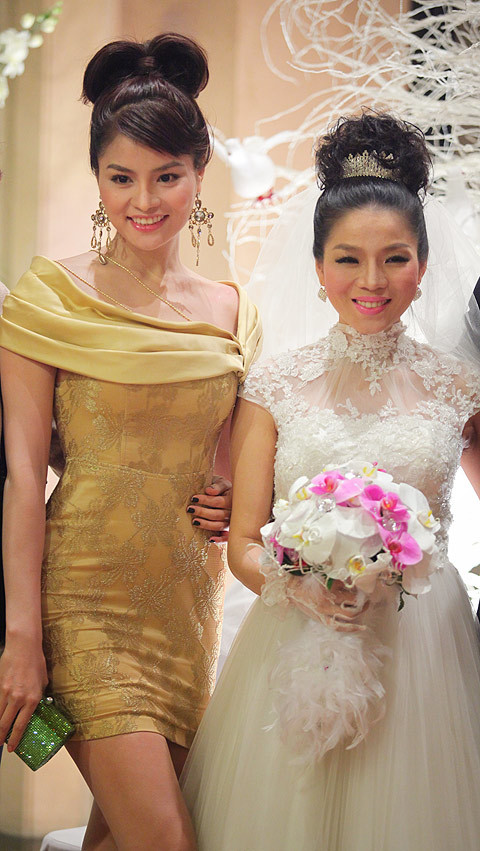 (VietNamNet)- Ca sĩ Lệ Quyên đã tận dụng "ngày tứ quý 1" để lên xe hoa cùng ông chủ phòng trà Không tên. Đám cưới của cô ca sĩ nổi tiếng này diễn ra khi cô đang mang bầu em bé 6 tháng. Ca sĩ Hồ Ngọc Hà sánh vai cùng Cường Đô La, Minh Quân,  vợ chồng Lưu Hương Giang - Hồ Hoài Anh, Đàm Vĩnh Hưng, Vũ Thu Phương... đã đến chia vui cùng cô dâu chú rể.