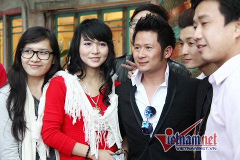 Nếu như Bằng Kiều được các fan nữ đua nhau đòi chụp ảnh thì vợ anh được các bạn trai chăm sóc rất kỹ