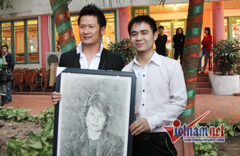 Một fan đã vẽ chân dung Bằng Kiều và tặng anh trong chuyến trở về nước lần này.