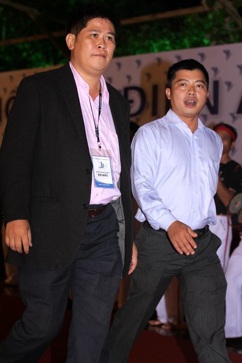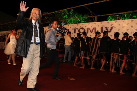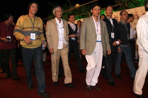 | Đạo diễn Lê Trọng Ninh khoác vai Lưu Trọng Hồng - nguyên Cục trưởng Cục Điện Ảnh bước trên thảm đỏ. |