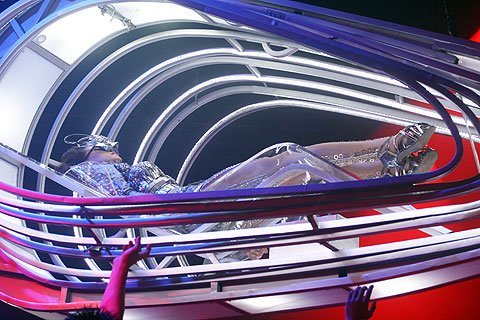 Cô đã "đáp" xuống sân khấu chính bằng một chiếc "phi thuyền" trước sự ngỡ ngàng của nhiều khán giả