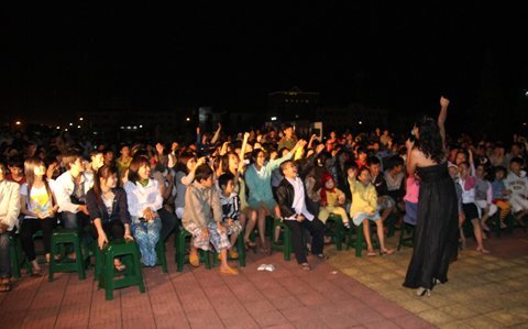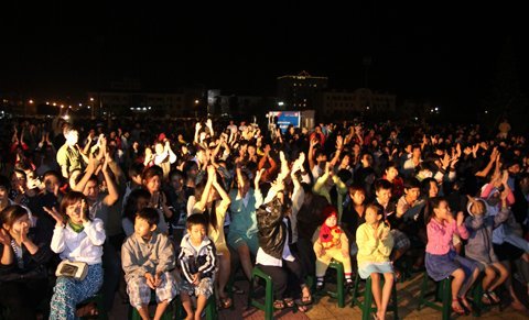 người dân Phú Yên với một bộ phim Việt Nam được chiếu phim ngoài trời.