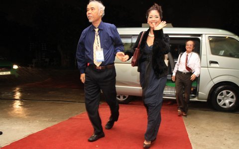 | Đạo diễn Đỗ Minh Tuấn tháp tùng diễn viên Chiều Xuân tới lễ trao giải |