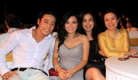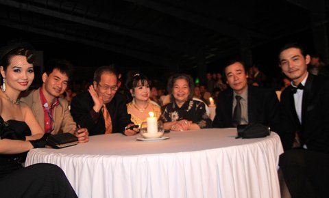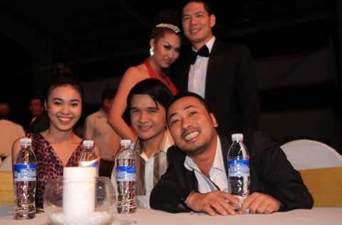 | Học theo mô hình của lễ trao giải Quả cầu vàng, khu vực VIP trong khán phòng của nhà hát Sao Mai buổi lễ bế mạc Liên hoan phim Việt Nam được BTC bố trí nhiều bàn tròn dành riêng cho các nghệ sĩ. Ninh Dương Lan Ngọc tươi tắn bên Võ Thanh Hòa, Đạo diễn Nguyễn Quang Dũng, Phi Thanh Vân và Bùi Bình Minh. |