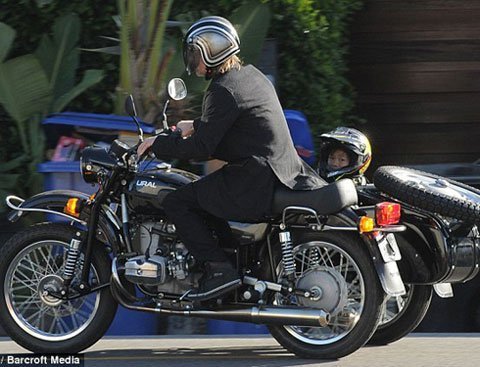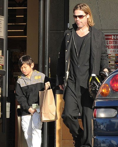 Sau khi đi mua sắm tại siêu thị nhỏ ở Los Feliz, California, Mỹ hôm 3/1, hai bố con Brad Pitt và Pax Thiên bị cánh phóng viên bắt gặp đang “cưỡi” trên chiếc xe xít-đờ-ca màu đen. Cậu con trai cá tính của Brad Pitt ngồi đằng sau và đội mũ bảo hiểm rất cẩn thận.