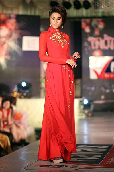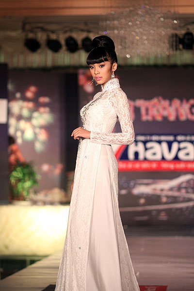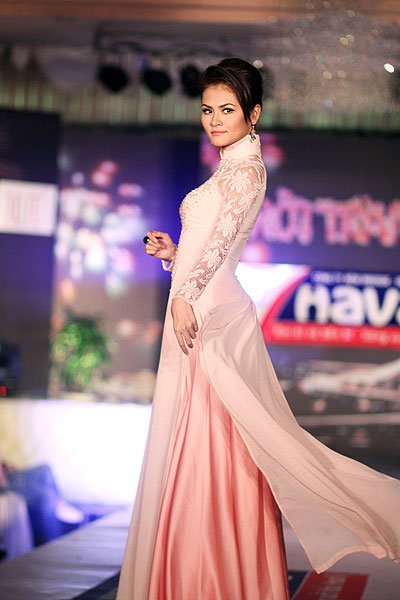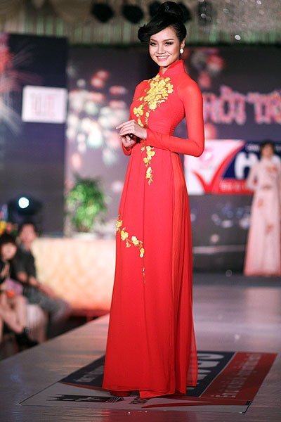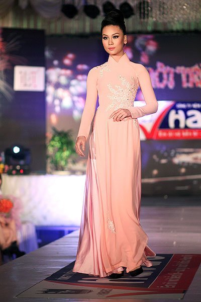 | BST Áo dài đón Xuân còn được trình diễn bởi Huyền Trang |
