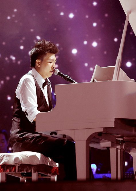 | Anh Khang vừa chơi piano vừa thể hiện "Anh mơ" |