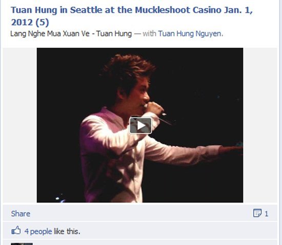 | Màn biểu diễn của Tuấn Hưng ở Mỹ vào ngày 1.1.2012 |