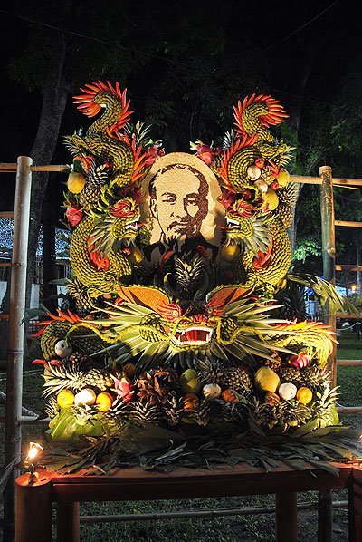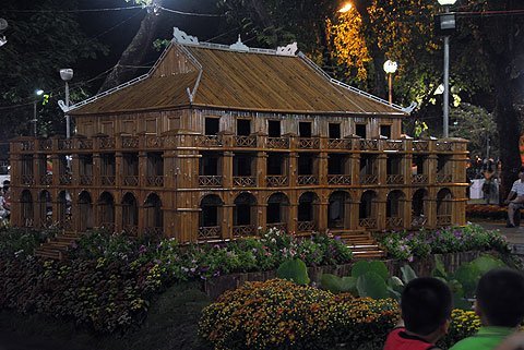 Bến Nhà Rồng được tái hiện lại bằng chất liệu tre