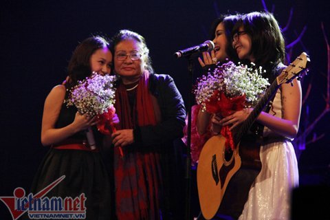 Mẹ của Thanh Lam lên tặng hoa cho cháu ngoại Thiên Thanh.