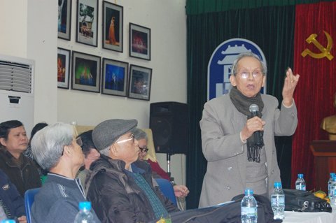 Nhạc sĩ Phó Đức Phương chia sẻ trong buổi gặp mặt. |