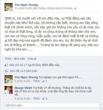 | Những dòng chữ được cho là nhắn nhủ tới Quách Ngọc Ngoan của Dương Yến Ngọc |