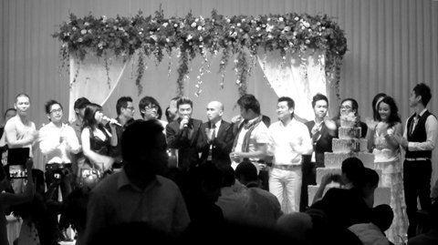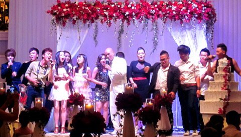Lễ cưới bắt đầu bằng màn trình diễn của cô dâu chú rể với hai ca khúc tình yêu ngọt ngào để giúp vui cho khách mời và cho chính đám cưới của mình. Sau phần nghi lễ khá ngắn gọn, sân khấu tiệc cưới ngay lập tức được biến thành sàn diễn ca nhạc.