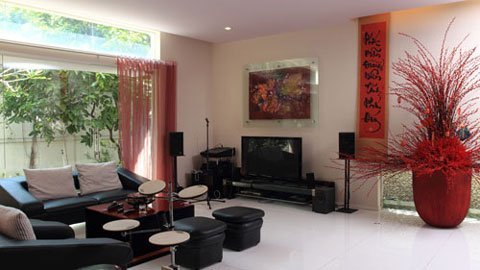 | Phòng khách rộng rãi để Cẩm Vân cùng bạn bè tha hồ hàn huyên tâm sự (Ảnh: tuổi trẻ) |