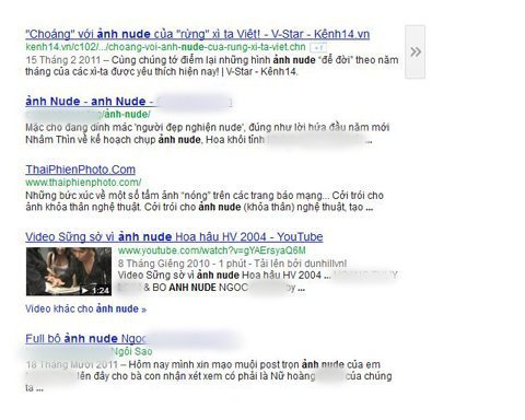 Không khó để lên mạng tra Google với từ khóa “ảnh nude”, và kết quả hãy… cẩn thận! Bên cạnh những website của các nhiếp ảnh gia chân chính là không ít những website đen với những bức ảnh dung tục. Với kết quả tìm kiếm dưới đây, rõ ràng là những thứ dung tục, lố lăng chiếm đa số áp đảo những bức ảnh nghệ thuật chính đáng.
