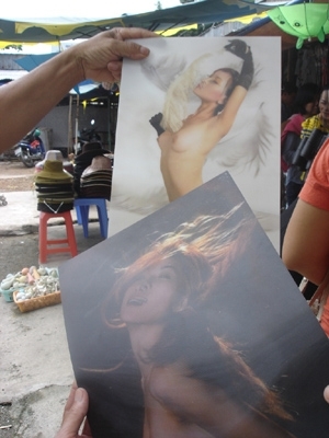 Có quầy lưu niệm chỉ để những hình ảnh khỏa thân giấu dưới các tấm hình trẻ em, phong cảnh nhưng cũng có những quầy bán công khai. Cụ thể như tại quầy lưu niệm Kim Đính, tranh khỏa thân này được để công khai và một thanh niên vô tư mời chào khách mua hàng xem như không có chuyện gì.
