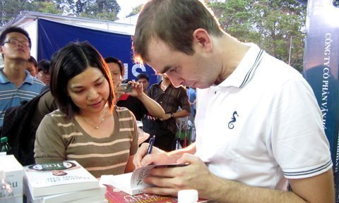 bán được 3.500 cuốn, vẫn miệt mài ký tặng cho độc giả xếp hàng dài