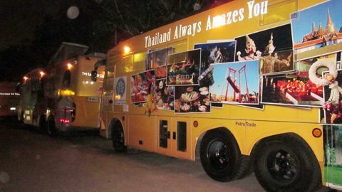 Vikrom Kromadit nói ông làm việc, tiếp khách, ăn uống, nghỉ ngơi, giải trí ngay trên chiếc xe được thiết kế riêng như ngôi nhà di động, với đoàn phục vụ gồm 13 người phụ trách các khâu lái xe, thư ký, đầu bếp, thông tin...