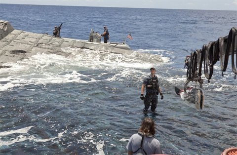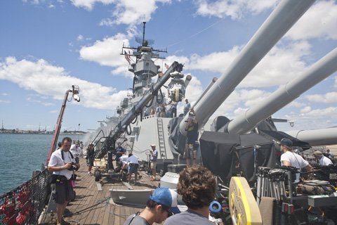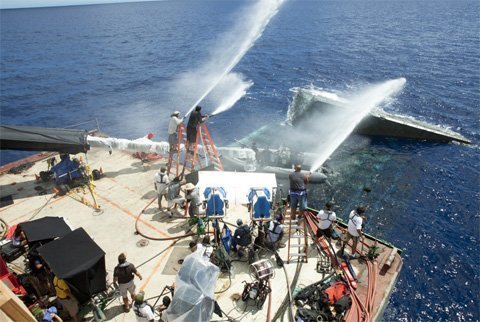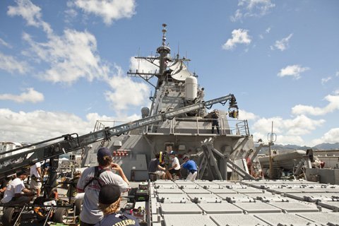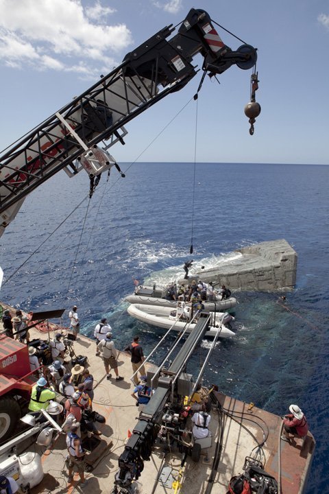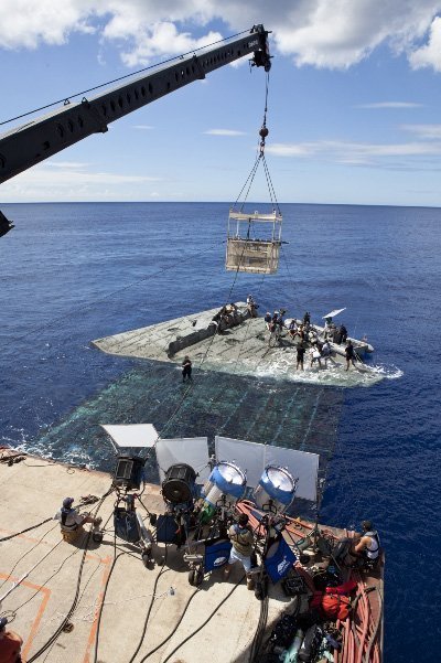 Các chuyên gia kĩ thuật của "Battleship" rất có kinh nghiệm khi thực hiện những cảnh quay quan trọng của bộ phim diễn ra trên đại dương ở độ sâu hàng trăm mét. Họ đã đưa ra một ý tưởng mà họ chưa thử bao giờ. Đó là thuê một chiếc xà lan có chiều dài tương đương một sân bóng đá và đưa nó ra biển.