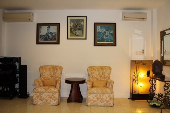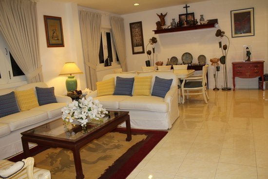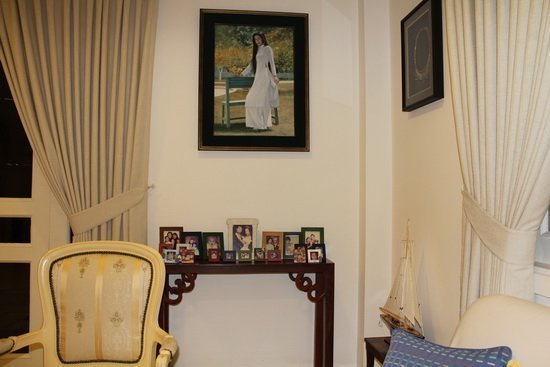 Phòng khách của căn biệt thự được bài trí đơn giản nhưng đầy tinh tế. Điểm nhấn của căn phòng chính là những bức tranh vẽ, những tấm hình mang đầy kỷ niệm của gia đình người đẹp. Nổi bật nhất trong số đó chính là bức tranh vẽ Diễm My thời trẻ tuổi với nhan sắc khiến người xem không khỏi ngỡ ngàng.