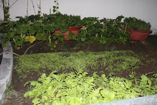 Vườn rau xanh mướt mát trong khu vườn nhỏ.