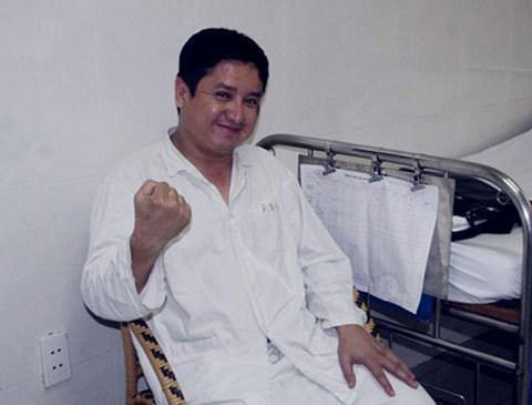 | Bị tai nạn, đau là thế nhưng Chí Trung vẫn giữ vẻ hài hước vốn có (Ảnh: ifonet) |